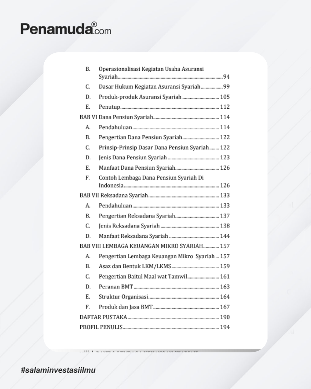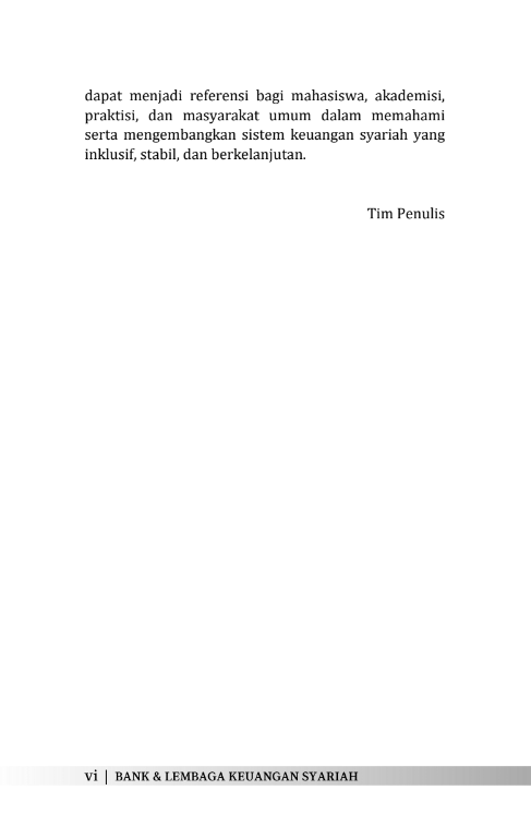 Buku ini disusun untuk memberikan pemahaman yang komprehensif mengenai sistem keuangan syariah di Indonesia, baik dari sisi regulasi, kelembagaan, maupun praktik operasional. Pembahasan diawali dengan peran dan kewenangan Otoritas Jasa Keuangan (OJK) serta Bank Indonesia sebagai regulator utama dalam menjaga stabilitas dan pengembangan industri keuangan syariah. Selanjutnya, buku ini mengulas secara mendalam mengenai bank syariah, meliputi pengertian, fungsi, dan jenis-jenisnya, seperti Bank Umum Syariah (BUS), Unit Usaha Syariah (UUS), dan BPR Syariah. Tidak hanya itu, pembaca juga akan memperoleh pemahaman menyeluruh terkait produk-produk bank syariah, mulai dari produk pembiayaan, penghimpunan dana, jasa perbankan, hingga fungsi sosial bank syariah. Keunggulan buku ini terletak pada penyajiannya yang tidak hanya bersifat teoritis, tetapi juga diperkaya dengan perspektif praktis, karena penulis merupakan akademisi sekaligus praktisi di bidang keuangan syariah. Hal ini menjadikan pembahasan lebih kontekstual, relevan dengan kondisi industri, dan aplikatif. Buku ini juga membahas berbagai lembaga keuangan syariah non-bank, seperti pasar modal syariah, asuransi syariah, pegadaian syariah, dana pensiun syariah, reksa dana syariah, serta lembaga keuangan mikro syariah. Oleh karena itu, buku ini sangat direkomendasikan bagi mahasiswa, dosen, praktisi, dan masyarakat umum yang ingin memahami dan mendalami keuangan syariah secara utuh sebagai sistem keuangan yang adil, beretika, dan berkelanjutan.