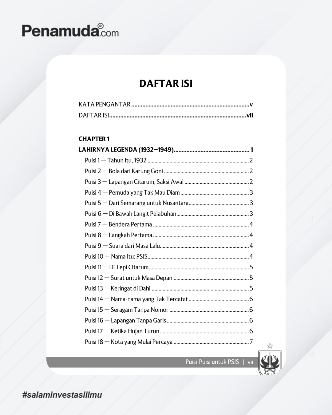 Dari lapangan sederhana di Citarum tahun 1932 hingga sorak tribun Jatidiri hari ini, buku ini menuturkan perjalanan panjang PSIS tentang perjuangan, kejayaan, keterpurukan, dan kebangkitan.
