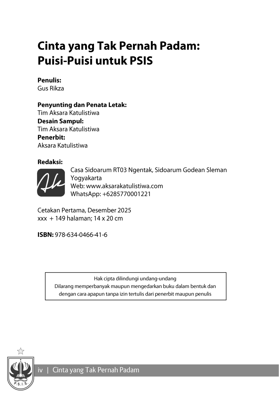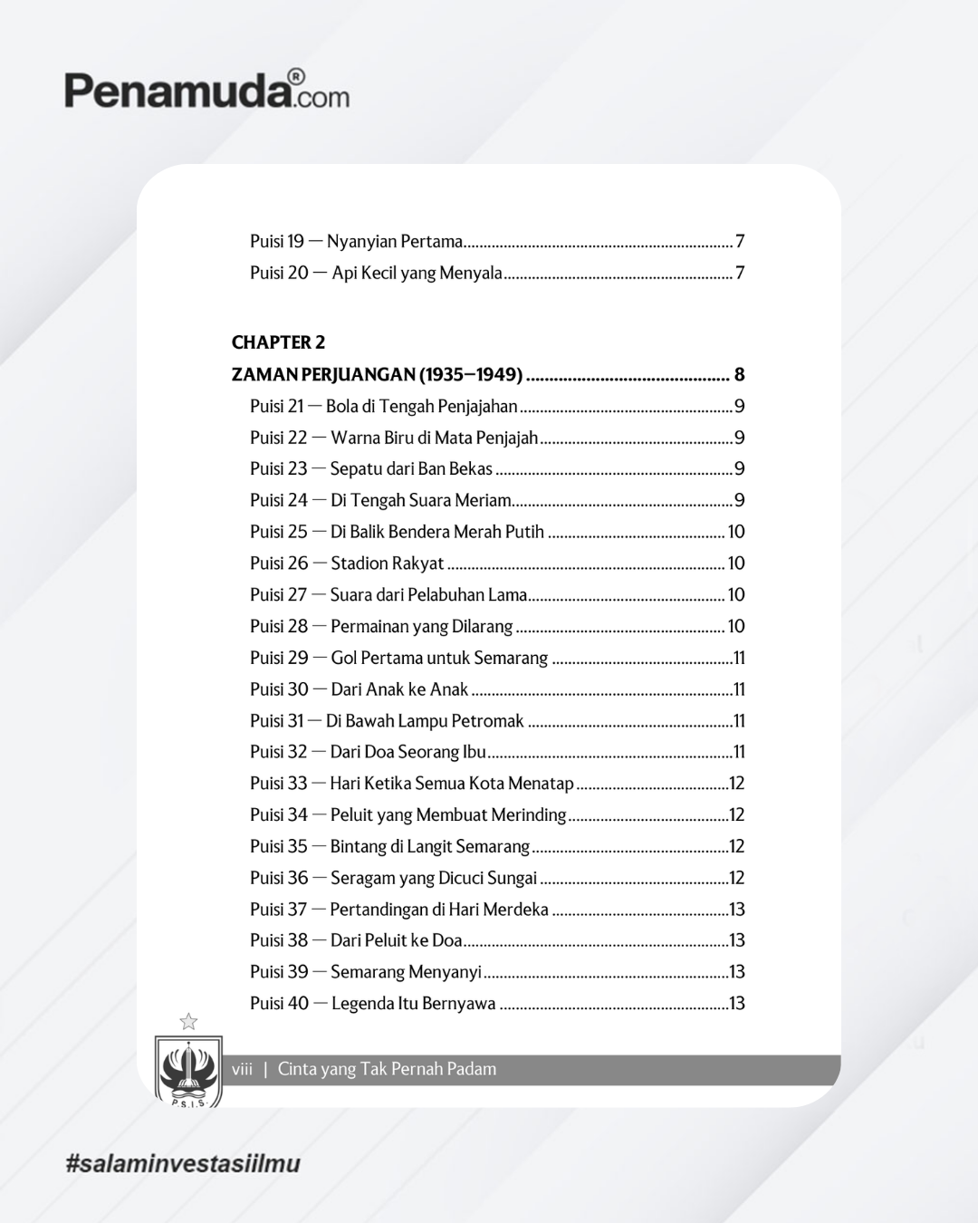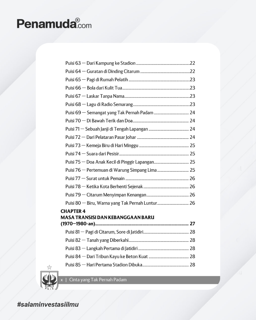 Cinta yang Tak Pernah Padam bukan sekadar buku puisi tentang sepak bola, tetapi do’a, kenangan, dan kesetiaan yang ditulis dengan hati untuk PSIS Semarang.