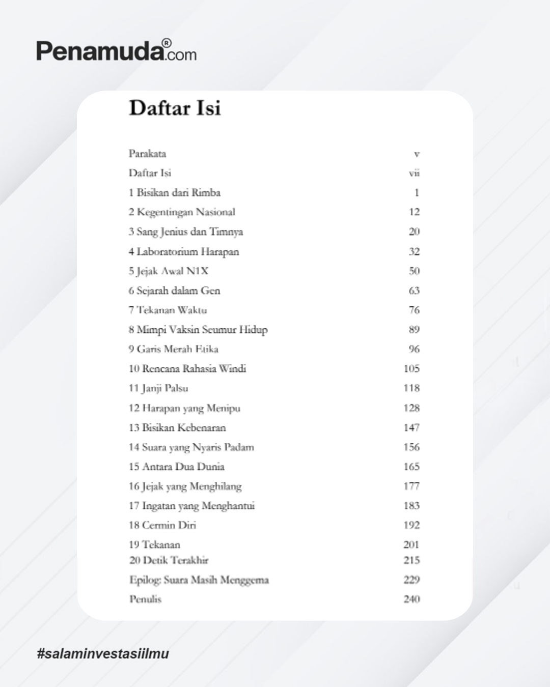 Borneo-25 dan Vaksin Rahasia” tidak hanya kisah tentang sains tapi adalah kisah keberanian dan harga yang harus dibayar untuk harapan. Tegang, emosional, dan menggugah; novel ini mengajak kita bertanya “Di tengah badai kematian, apa yang lebih berharga; nyawa, kebenaran, atau moralitas?”