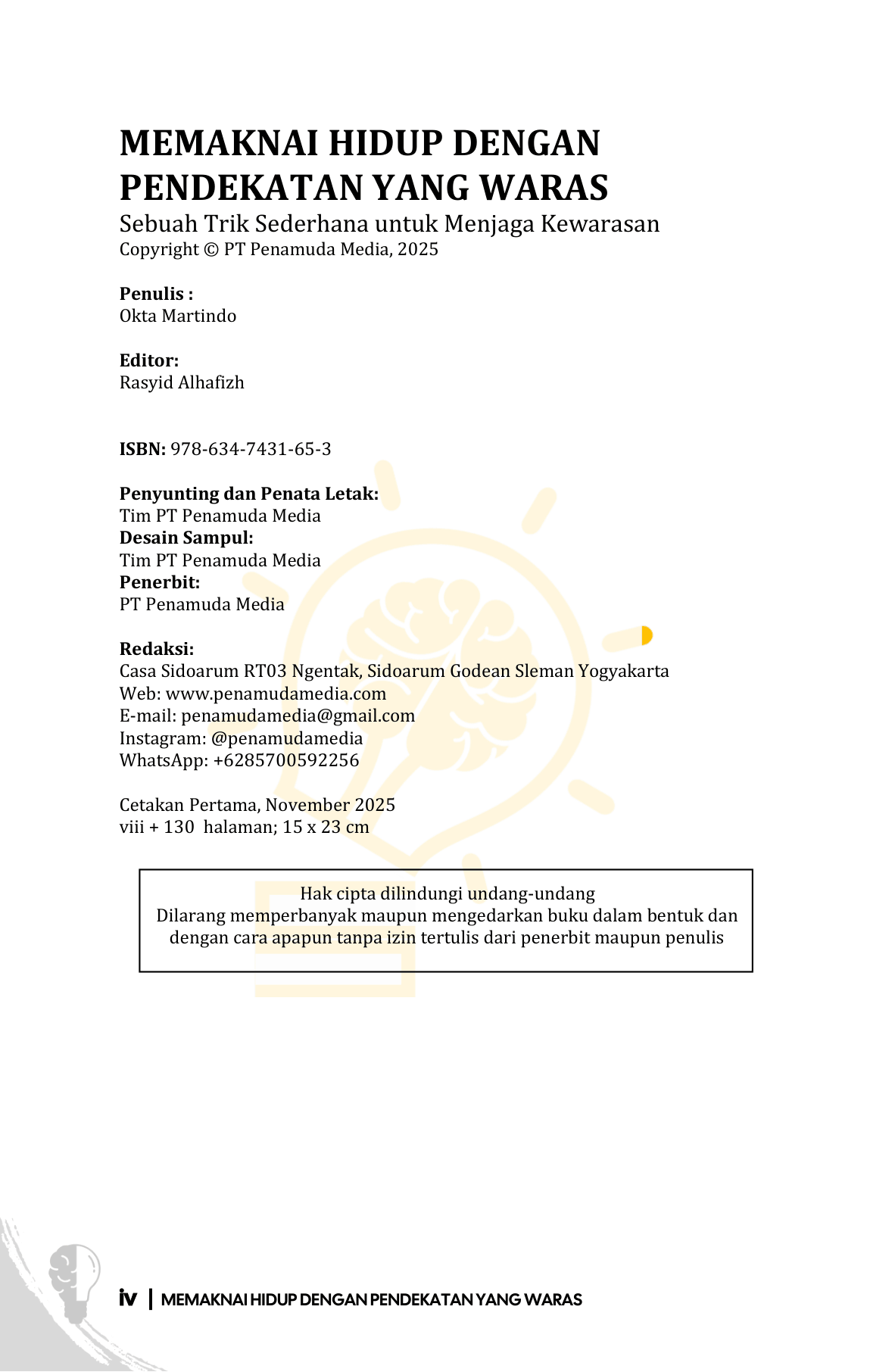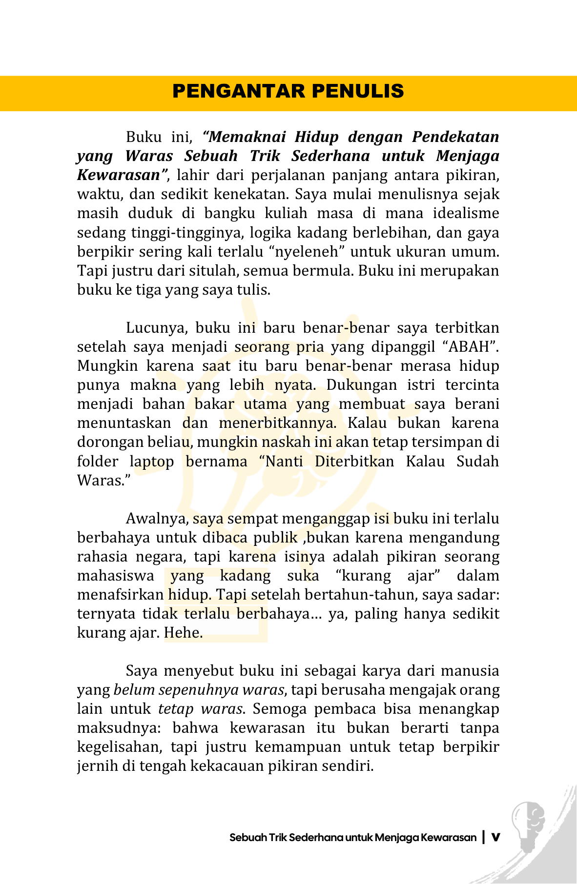 Judul: MEMAKNAI HIDUP DENGAN PENDEKATAN YANG WARAS SEBUAH TRIK SEDERHANA UNTUK MENJAGA KEWARASAN