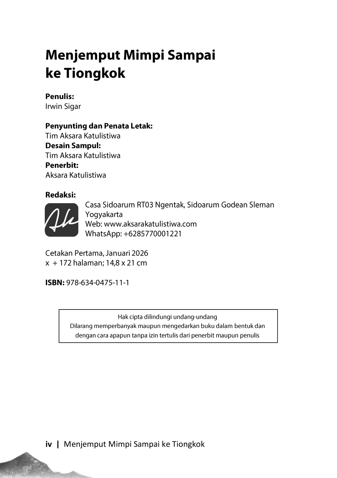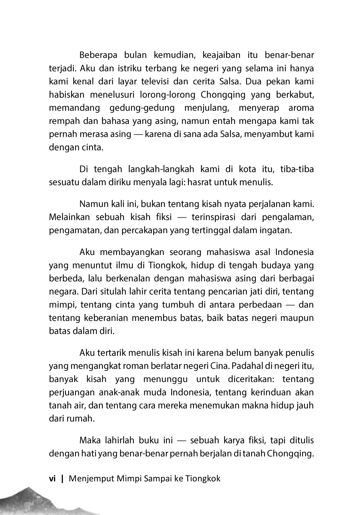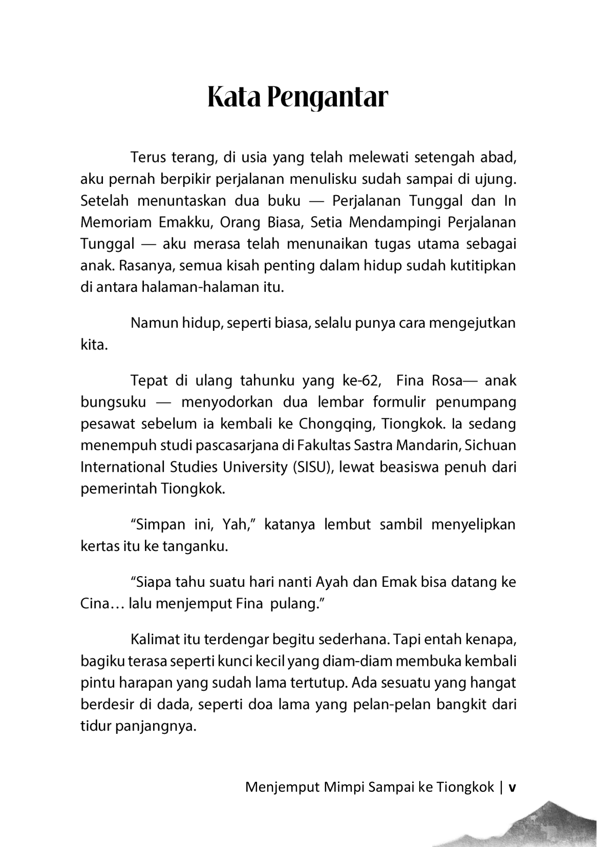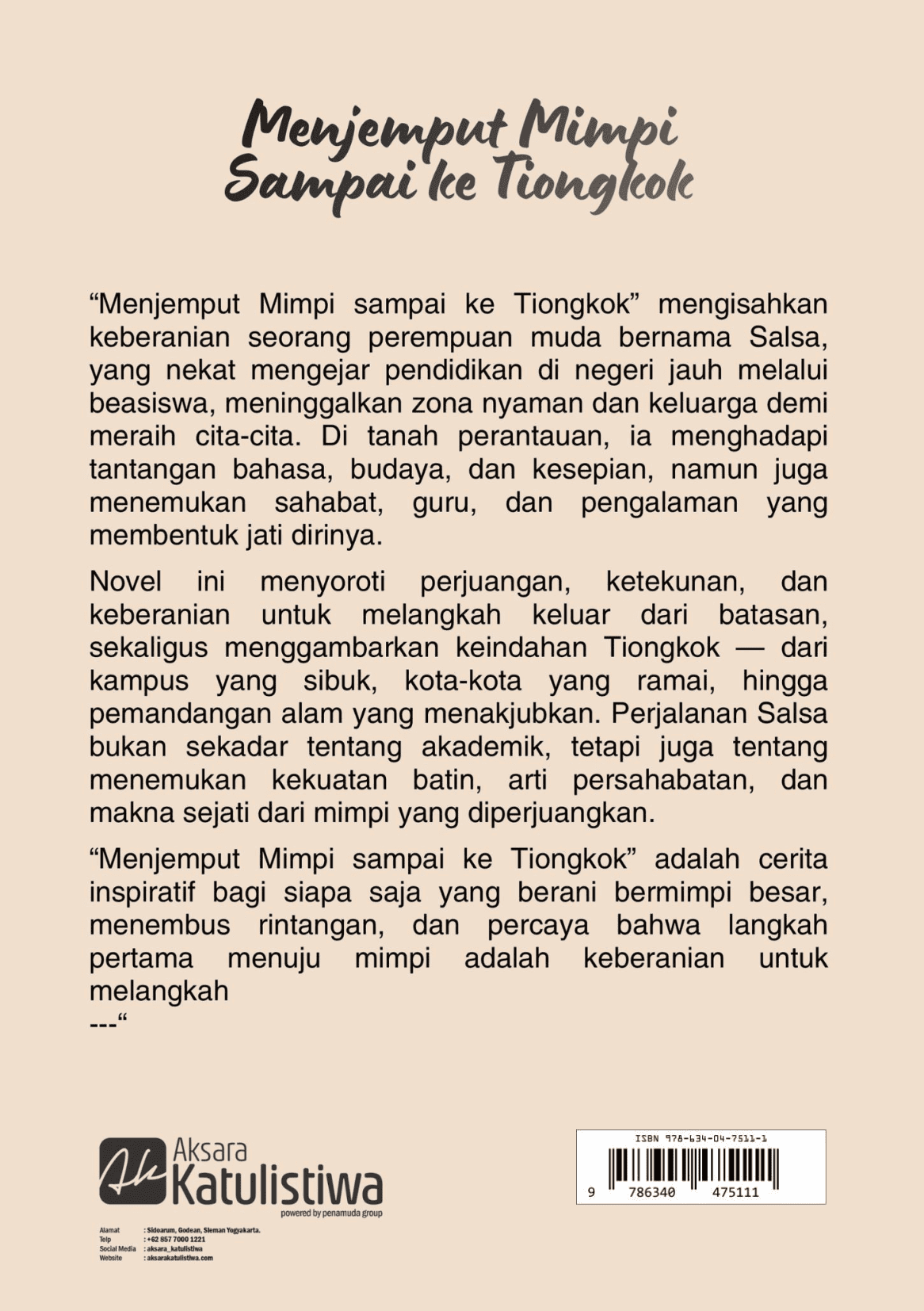 “Menjemput Mimpi sampai ke Tiongkok” adalah cerita inspiratif bagi siapa saja yang berani bermimpi besar, menembus rintangan, dan percaya bahwa langkah pertama menuju mimpi adalah keberanian untuk melangkah