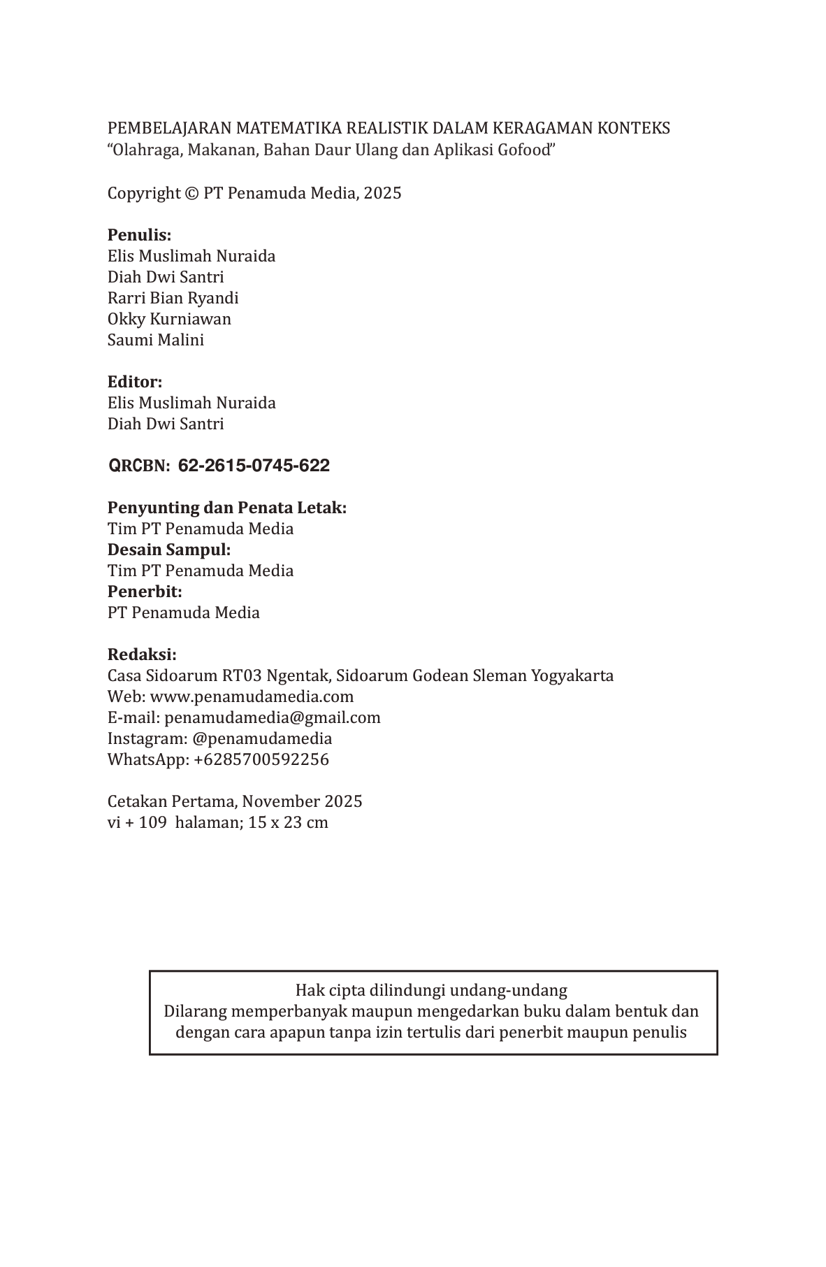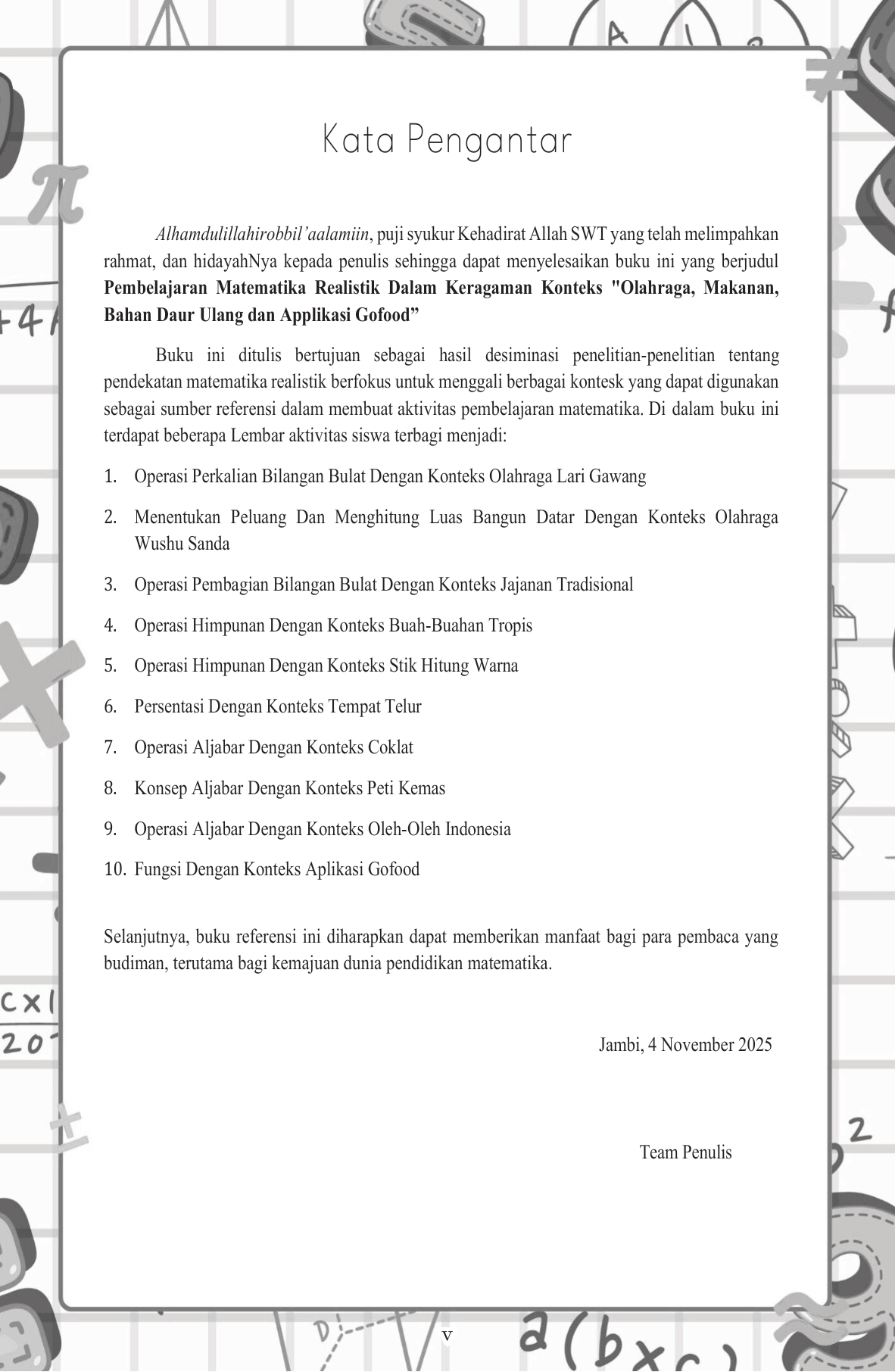 Judul: PEMBELAJARAN MATEMATIKA REALISTIK DALAM KERAGAMAN KONTEKS “Olahraga, Makanan, Bahan Daur Ulang dan Applikasi Gofood”