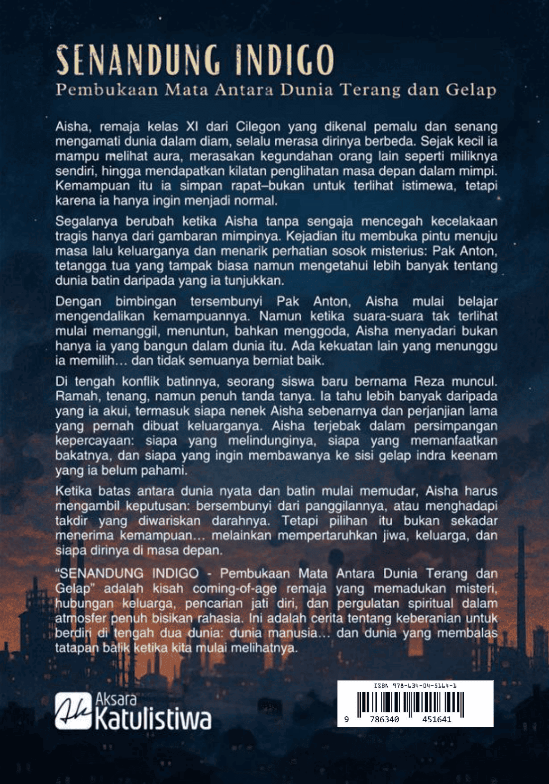 “SENANDUNG INDIGO Pembukaan Mata Antara Dunia Terang dan Gelap adalah kisah coming-of-age remaja yang memadukan misteri, hubungan keluarga, pencarian jati diri, dan pergulatan spiritual dalam atmosfer penuh bisikan rahasia. Ini adalah cerita tentang keberanian untuk berdiri di tengah dua dunia: dunia manusia… dan dunia yang membalas tatapan balik ketika kita mulai melihatnya.